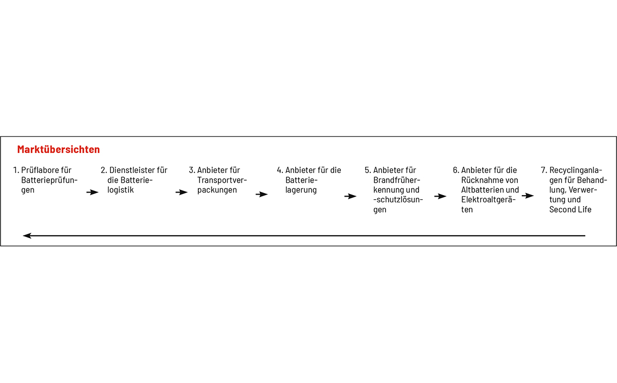 We report regularly on regulations and industries relating to batteries, and also offer reference works, documentation and working aids. Batteries, especially lithium-ion batteries, have dominated reporting for years. In this edition, which is up-dated and expanded annually, we bring together regulations, recommendations and overviews of service providers in a comprehensive compendium.