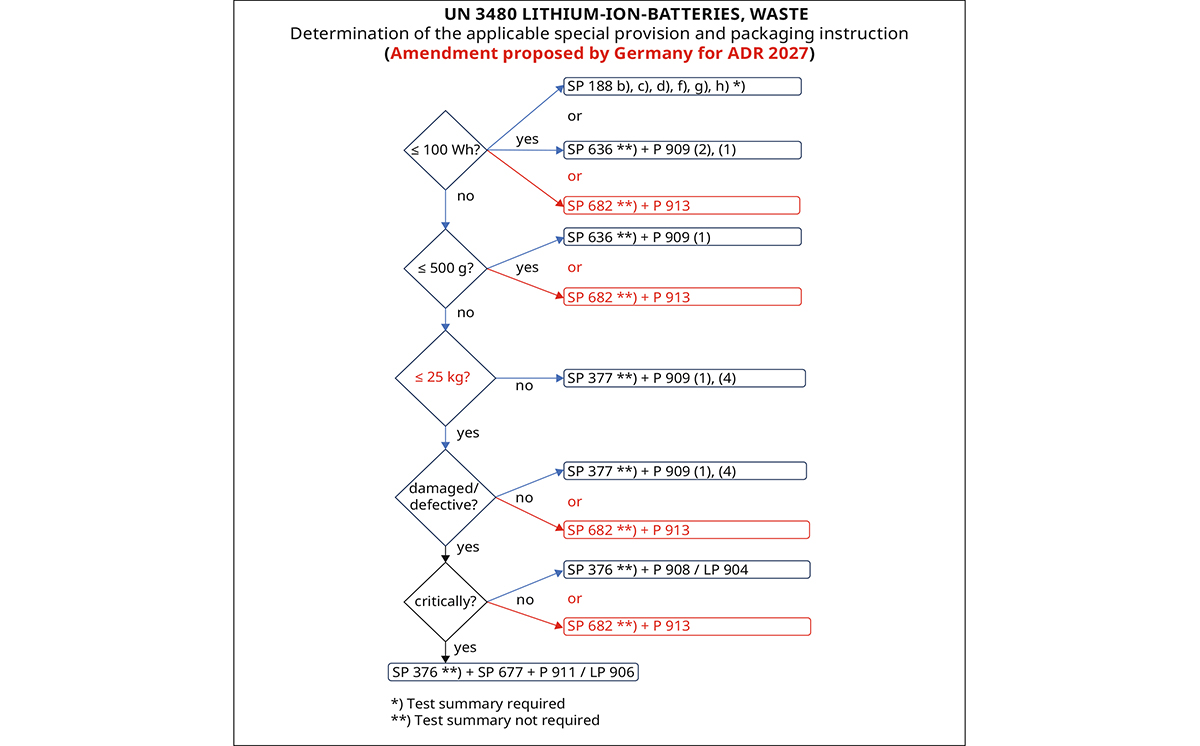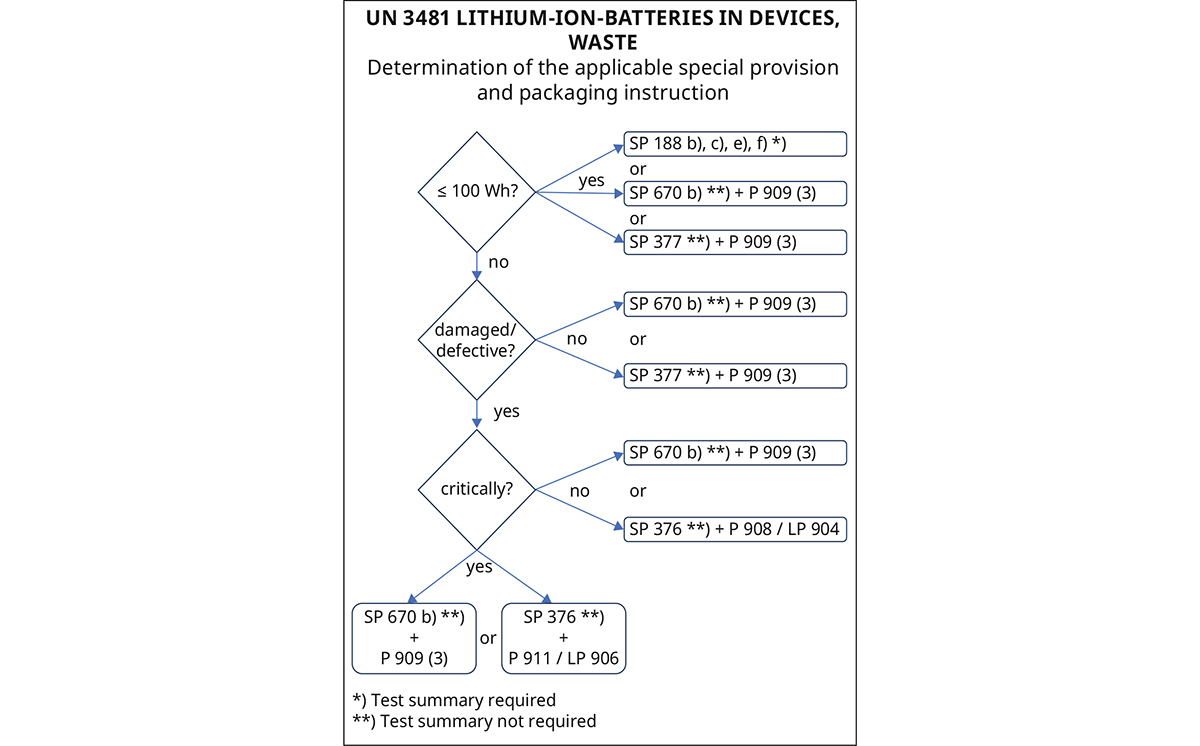 UN 3480 lithium-ion-batteries as waste. Determination of the applicable special provision and packaging instruction.