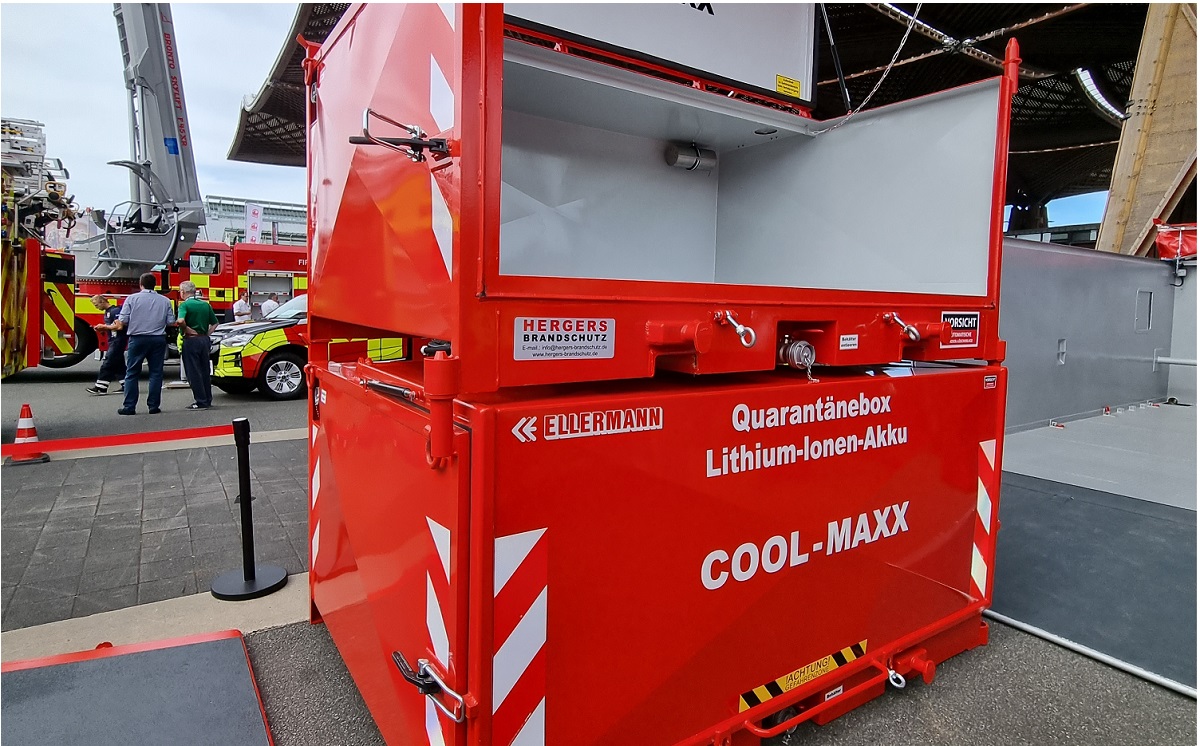 Eine Aufbewahrungsmöglichkeit für Lithium-Ionen-Akkus biete die Quarantänebox „Cool-Boxx“ oder "Cool-Maxx". Ellermann Eurocon gibt an, dass die Box mit einem temperatur-gesteuerten und automatisch auslösenden Aerosol-Löschgenerator ausgestattet sei. Im Falle eines Thermischen Durchgehens könne mit Wasser geflutet werden.