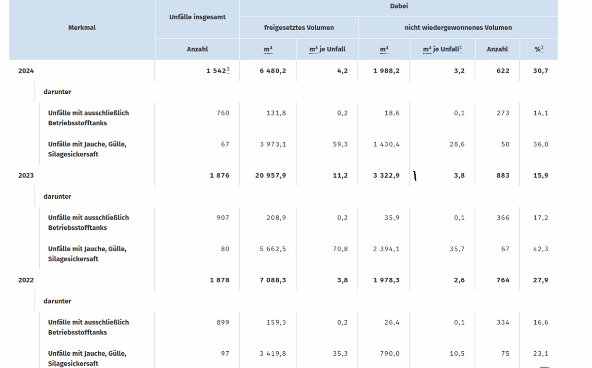 Weniger Unfälle, weniger Schadstoffe: 2024 wurden deutlich weniger wassergefährdende Stoffe unkontrolliert freigesetzt. für mehr bitte anmelden